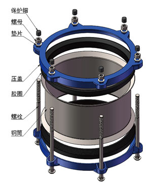 柔性多功能管道連接器不銹鋼缸筒和球墨鑄鐵壓蓋具有優(yōu)良的抗拉強度和防腐性,能夠適應安裝和整個使用周期中接頭所承受的負載強度。