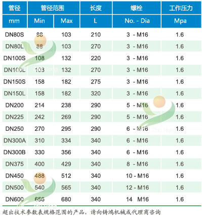 柔性多功能管道連接器適用管道范圍大,可連接外徑差異達24mm的管道。