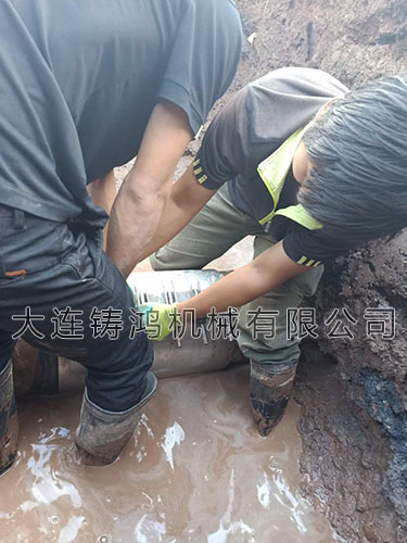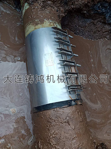 由于現(xiàn)場(chǎng)情況緊急,需要馬上恢復(fù),但是需要修補(bǔ)的管徑?jīng)]在315-325這個(gè)范圍內(nèi),我司建議客戶在漏點(diǎn)位置墊一塊膠皮或者鋼板,再安裝修補(bǔ)器,保證管道堵漏后的密封效果。